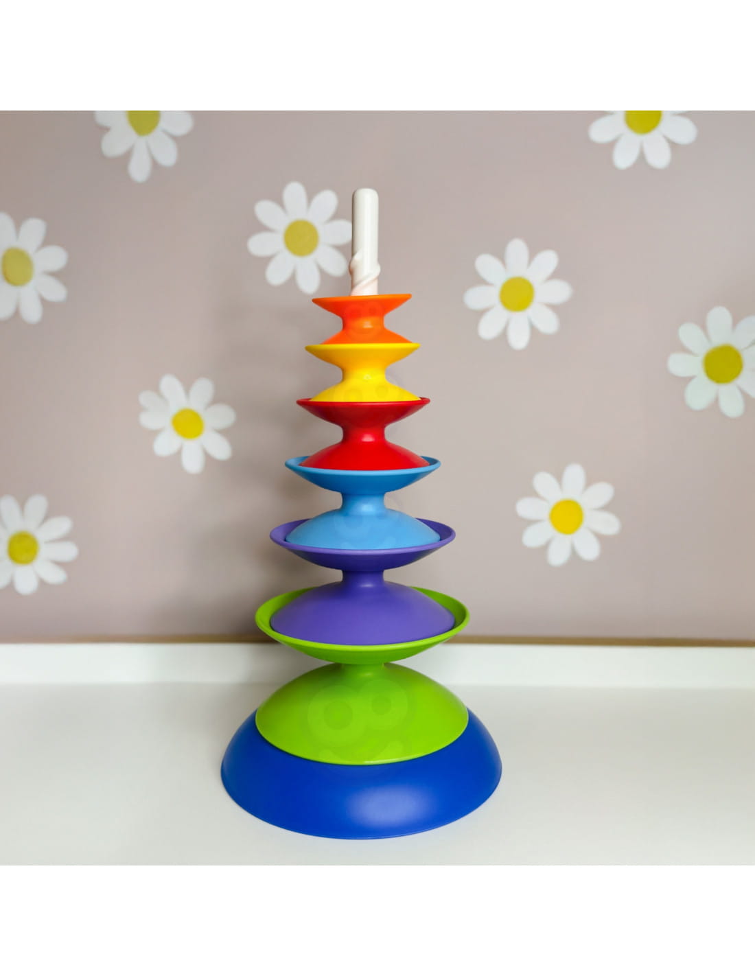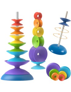 Układanie kolorowych elementów na trzpieniu to nie tylko radość, ale także ważny etap rozwoju dziecka – ćwiczenie rączek, koncentracji i cierpliwości.