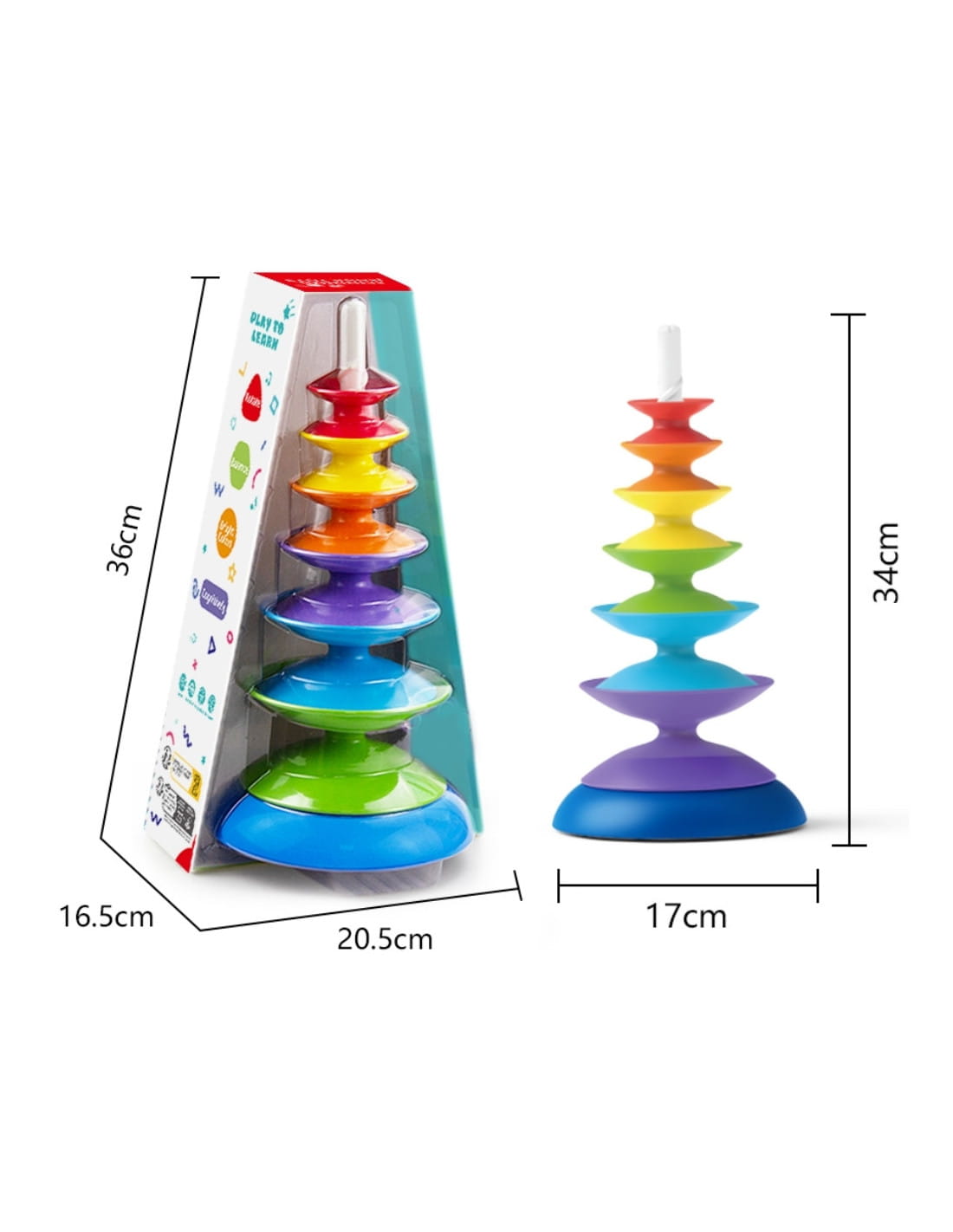 Kolorowa piramidka edukacyjna – wieża Montessori dla dzieci od 18 miesięcy – została stworzona z myślą o maluchach, które uczą się przez działanie, dotyk i samodzielne próby.