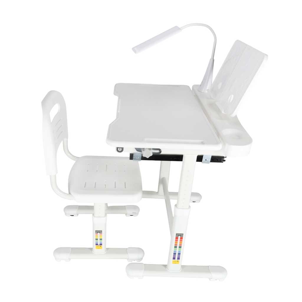 Biurko dziecięce szkolne regulowane + krzesło + lampka LED USB – białe NOWOŚĆ