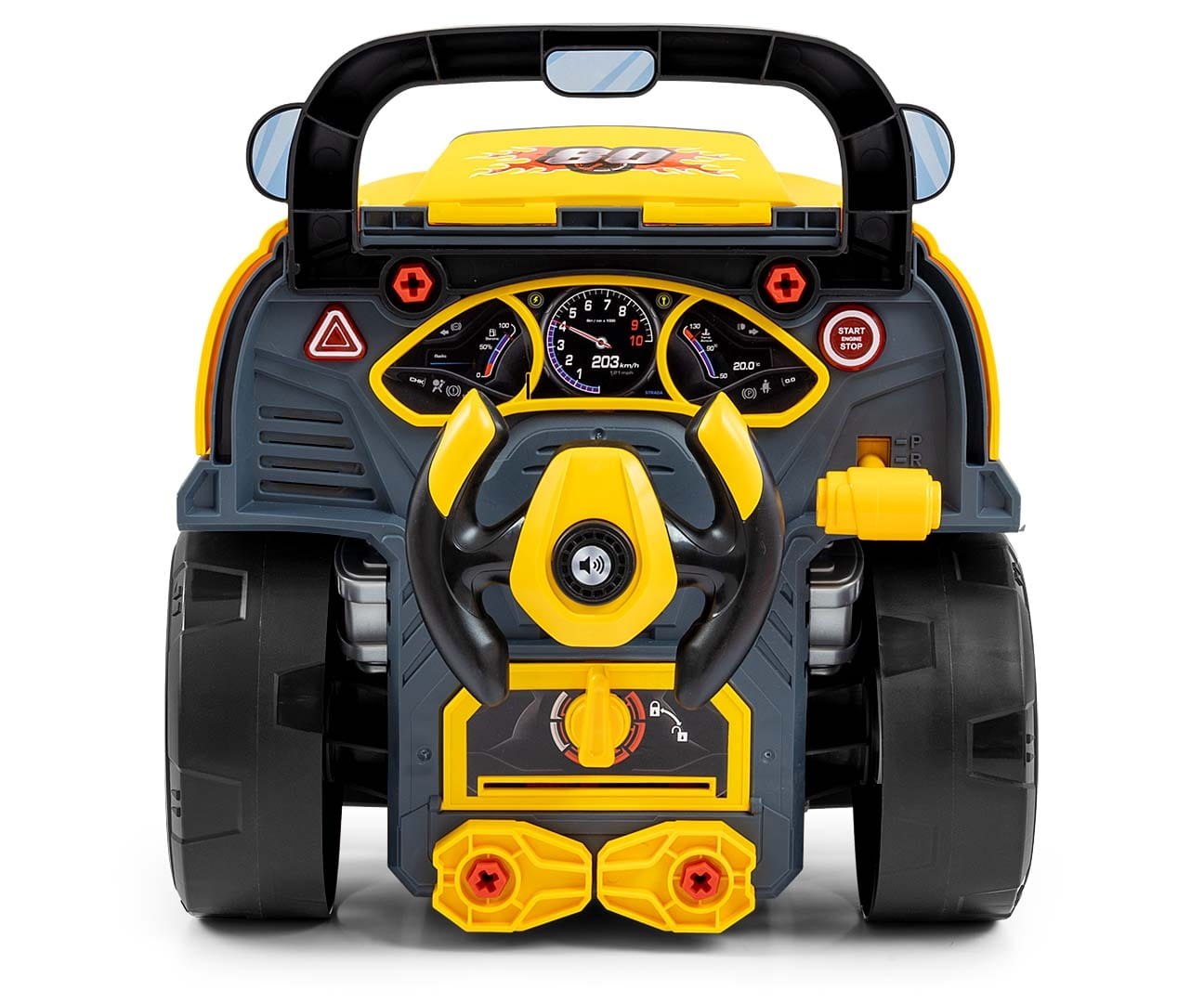 Dziecko może samodzielnie rozkręcać i skręcać pojazd, ćwicząc zręczność, logiczne myślenie i koordynację ręka–oko. Świetna zabawa i nauka w jednym!