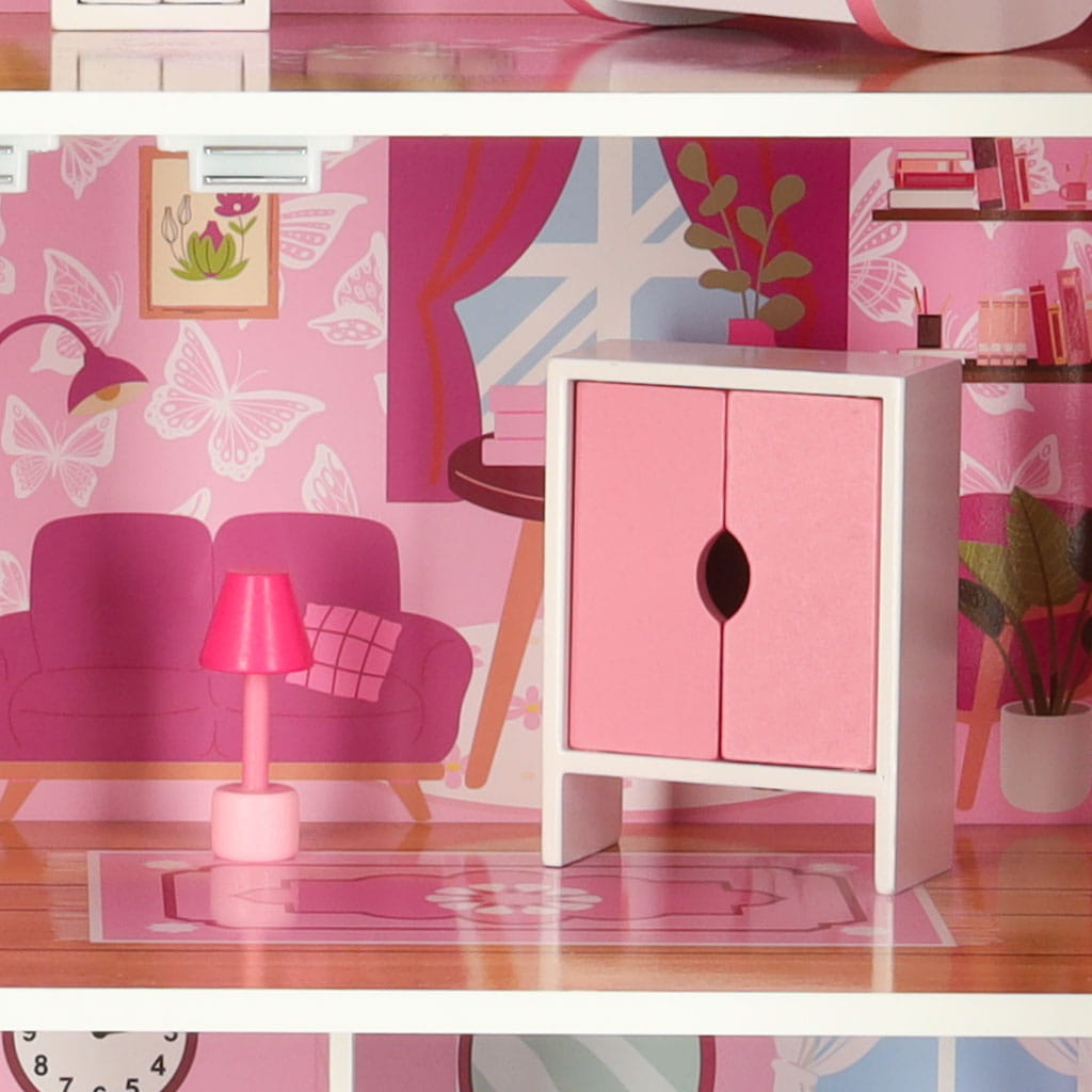 Piękny drewniany domek dla lalek LULILO PAPILIO o wysokości 80 cm to marzenie każdej małej dziewczynki. Zawiera komplet mebelków i dekoracji, które pozwalają urządzić każdy pokój po swojemu. Solidny, estetyczny i pełen uroku – idealny pomysł na prezent!