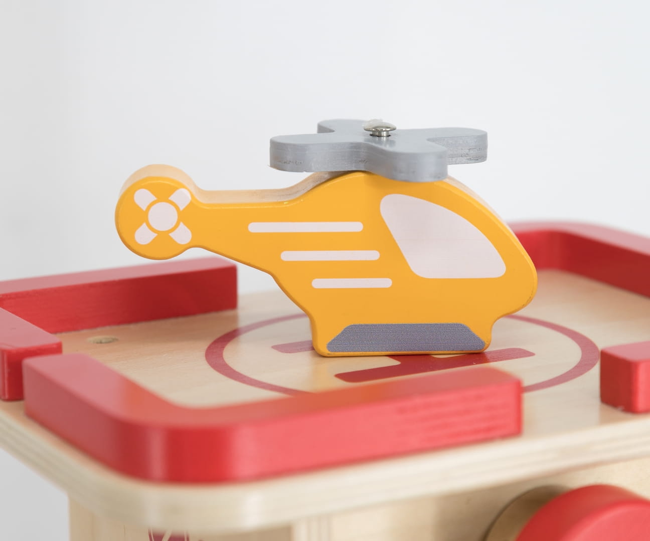 Dzieci mogą odgrywać scenki miejskie, prowadzić własne „loty” helikopterem, rozwijając wyobraźnię, zdolności manualne oraz koordynację ruchową. Zestaw wykonany jest z trwałych i bezpiecznych materiałów, które gwarantują długie godziny zabawy bez ryzyka uszkodzeń.
