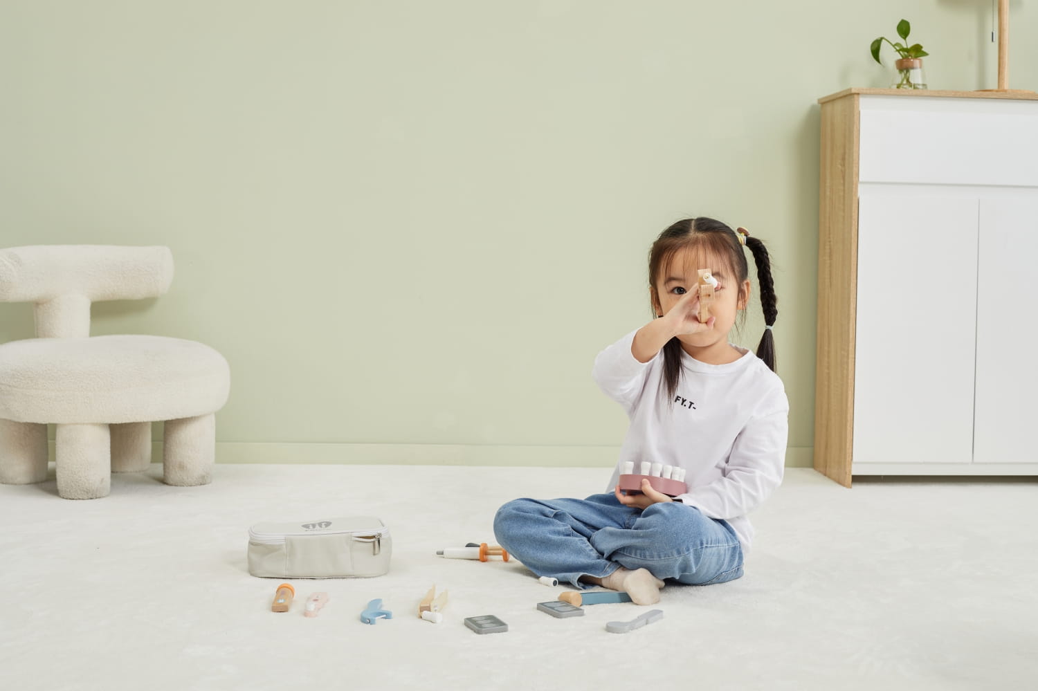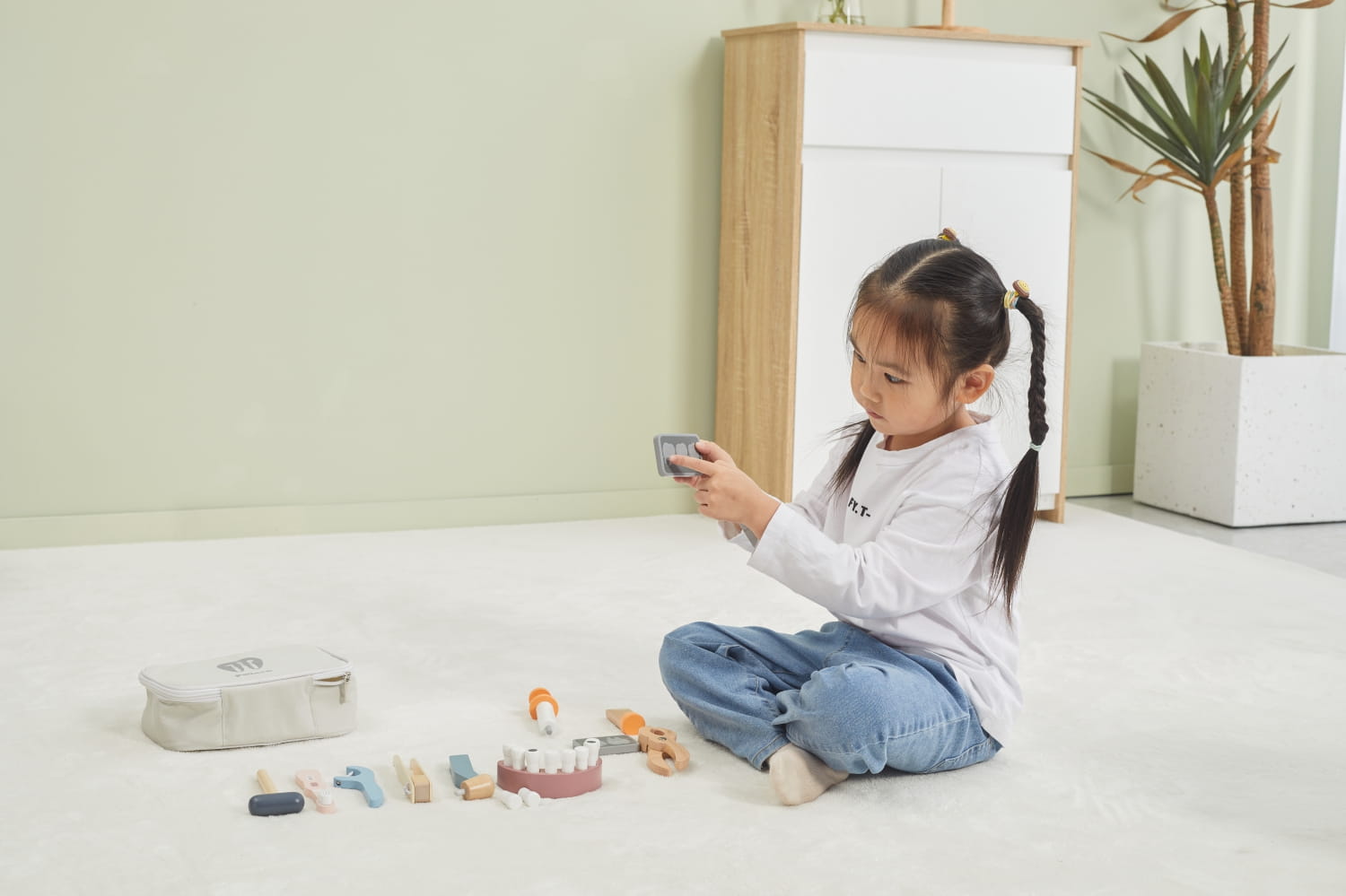 Zestaw uczy poprzez zabawę – pomaga dziecku zrozumieć, jak ważne jest dbanie o higienę jamy ustnej, a jednocześnie redukuje stres przed wizytą u dentysty. Drewniane elementy są trwałe i bezpieczne, pomalowane nietoksycznymi farbami wodnymi.