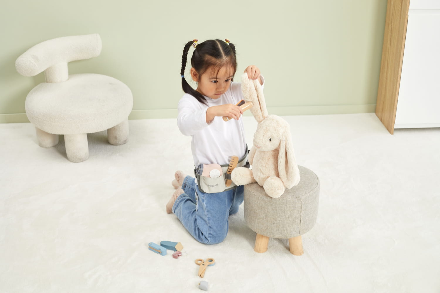 Zestaw zachęca do kreatywnej zabawy w odgrywanie ról, rozwija zdolności manualne oraz uczy współpracy i empatii. Dzięki solidnemu wykonaniu z drewna oraz użyciu bezpiecznych farb wodnych zabawka jest trwała i w pełni bezpieczna dla dzieci.