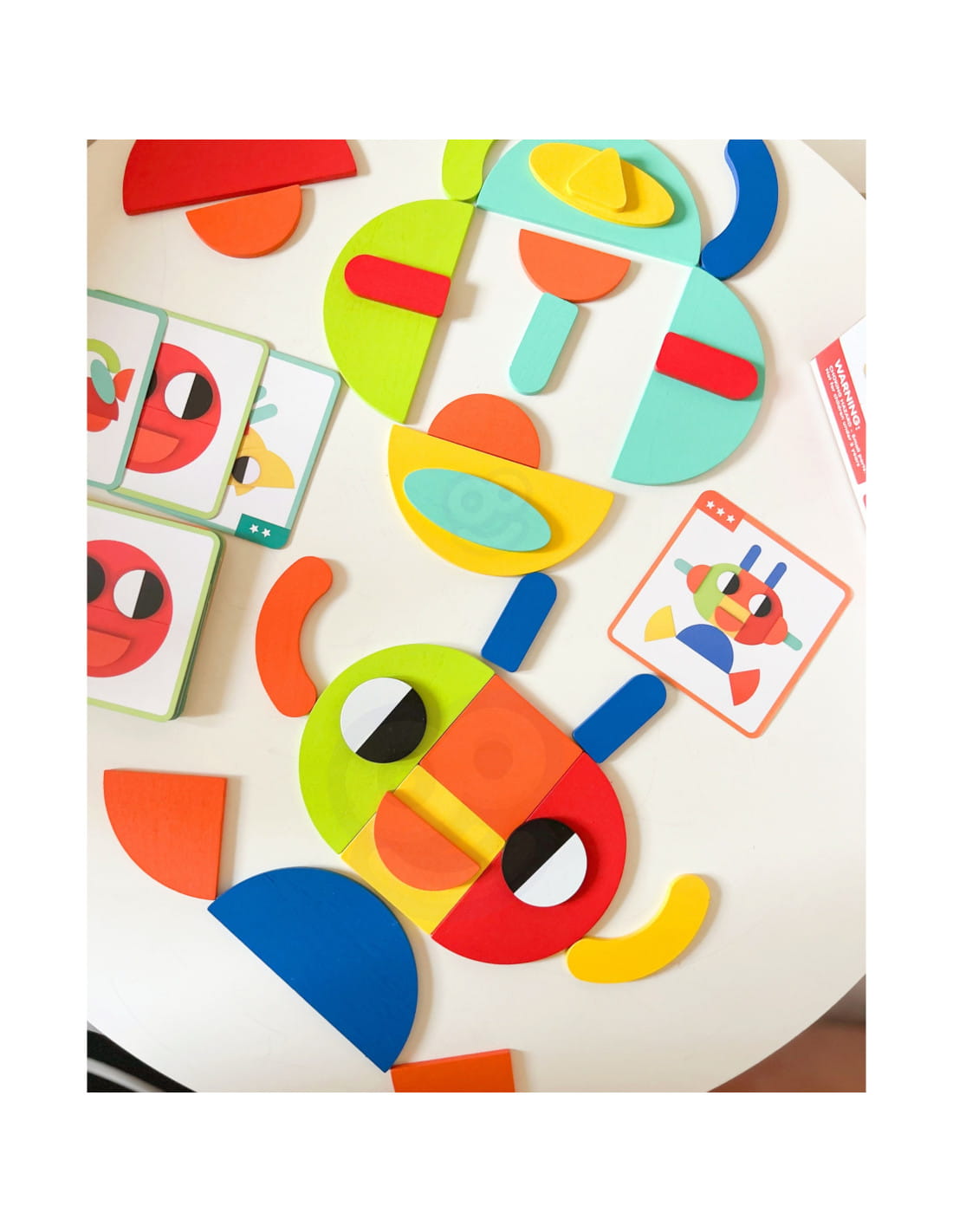 Drewniana układanka wg wzorów – wspiera koncentrację, logiczne myślenie i spostrzegawczość.