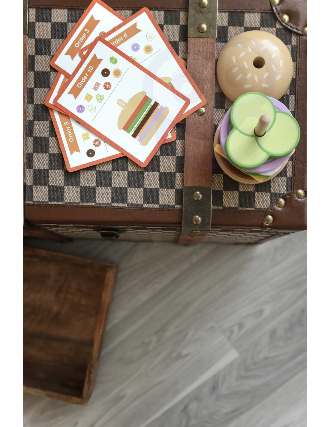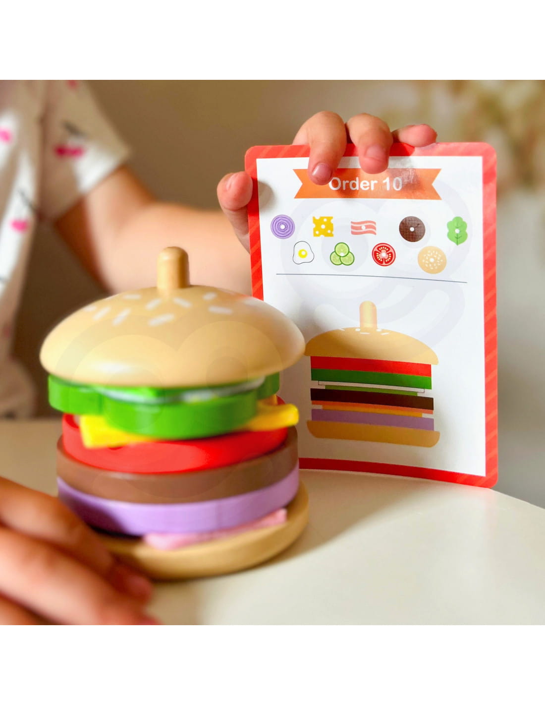 Zamień pokój dziecka w klimatyczną burgerownię! Zestaw WOOPIE GREEN to aż 15 drewnianych elementów, dzięki którym Twoje dziecko stworzy własnego burgera – warstwa po warstwie! Idealna zabawa dla małych kucharzy, która rozwija wyobraźnię, motorykę i zdolności manualne.