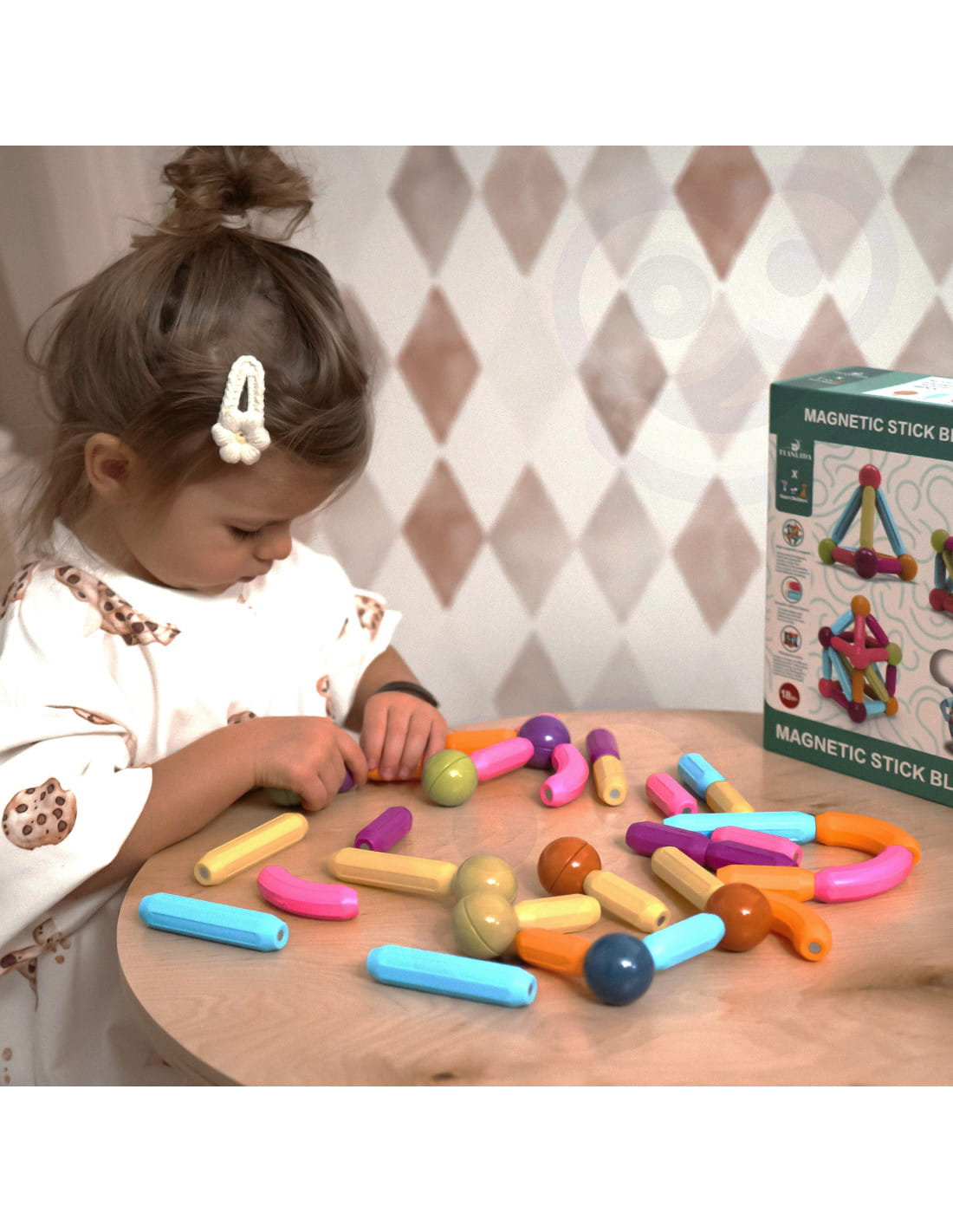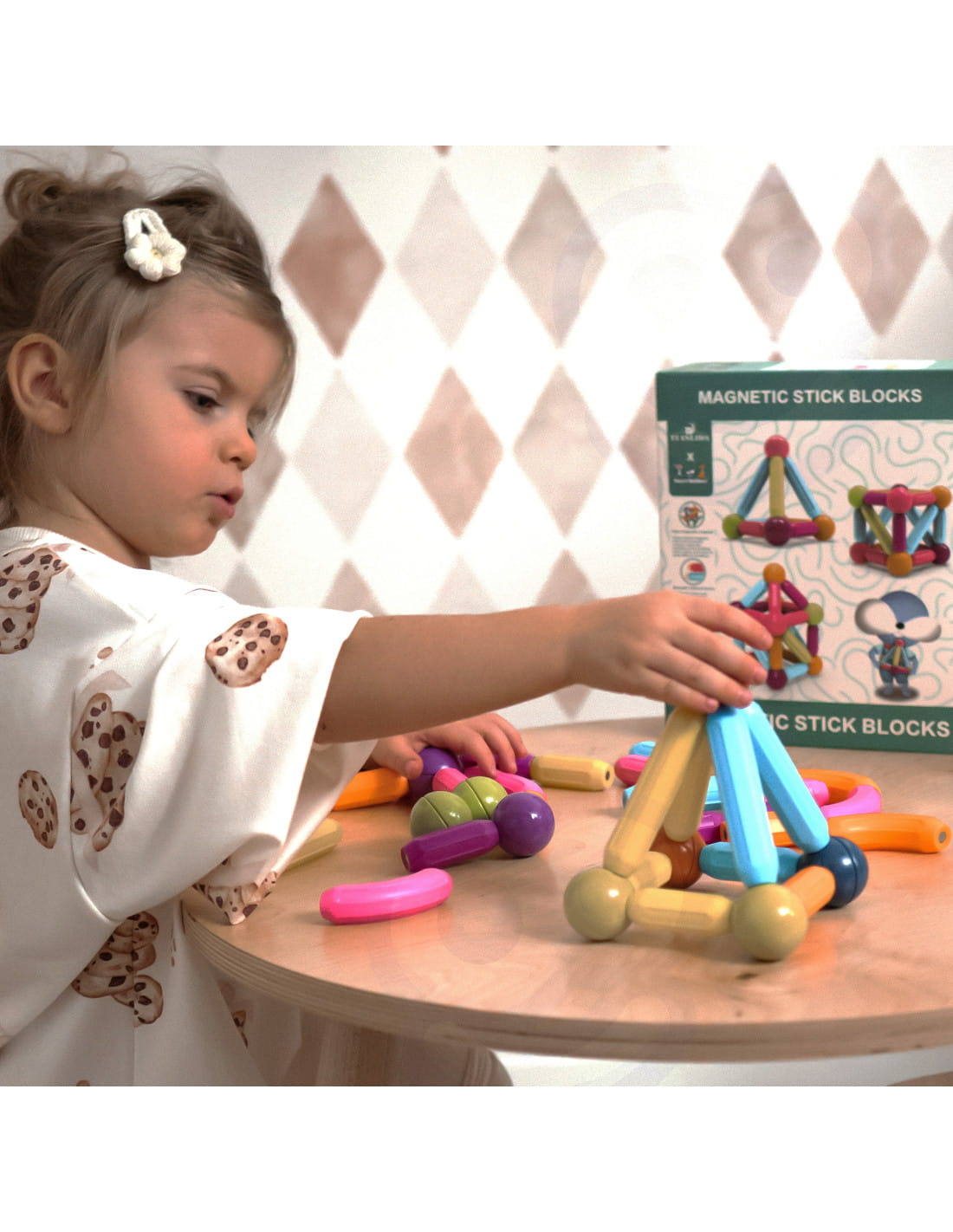 Magnetyczne klocki konstrukcyjne 38 elementów to edukacyjna zabawka, która rozwija kreatywność, wyobraźnię przestrzenną i zdolności manualne dziecka. Duże, grube elementy są bezpieczne i łatwe do chwytania, a dzięki magnesom można tworzyć różnorodne konstrukcje.