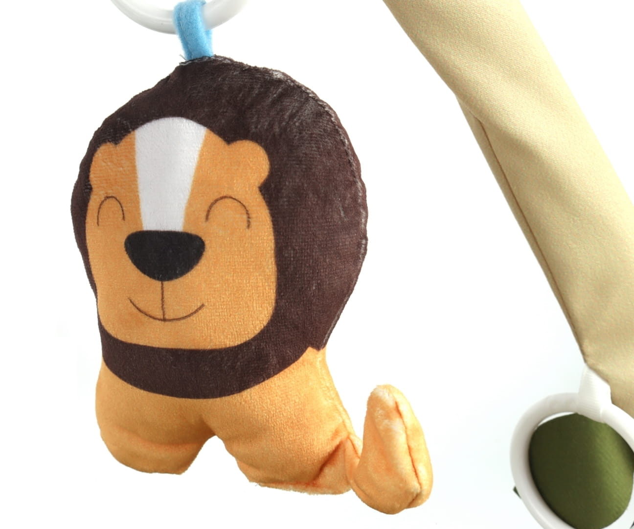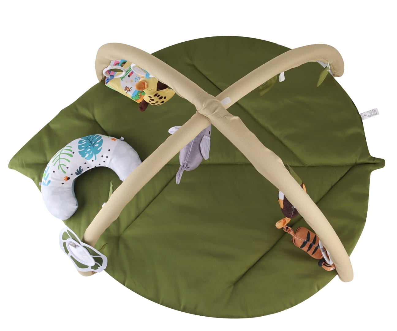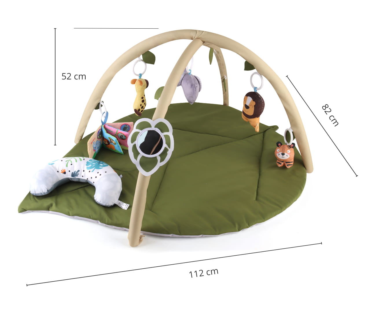 Stwarza strefę aktywnej zabawy – dziecko leżąc na plecach lub brzuszku może bawić się zawieszkami: pluszowymi zwierzątkami, bezpiecznym lusterkiem, książeczką oraz poduszeczką typu "rogal".