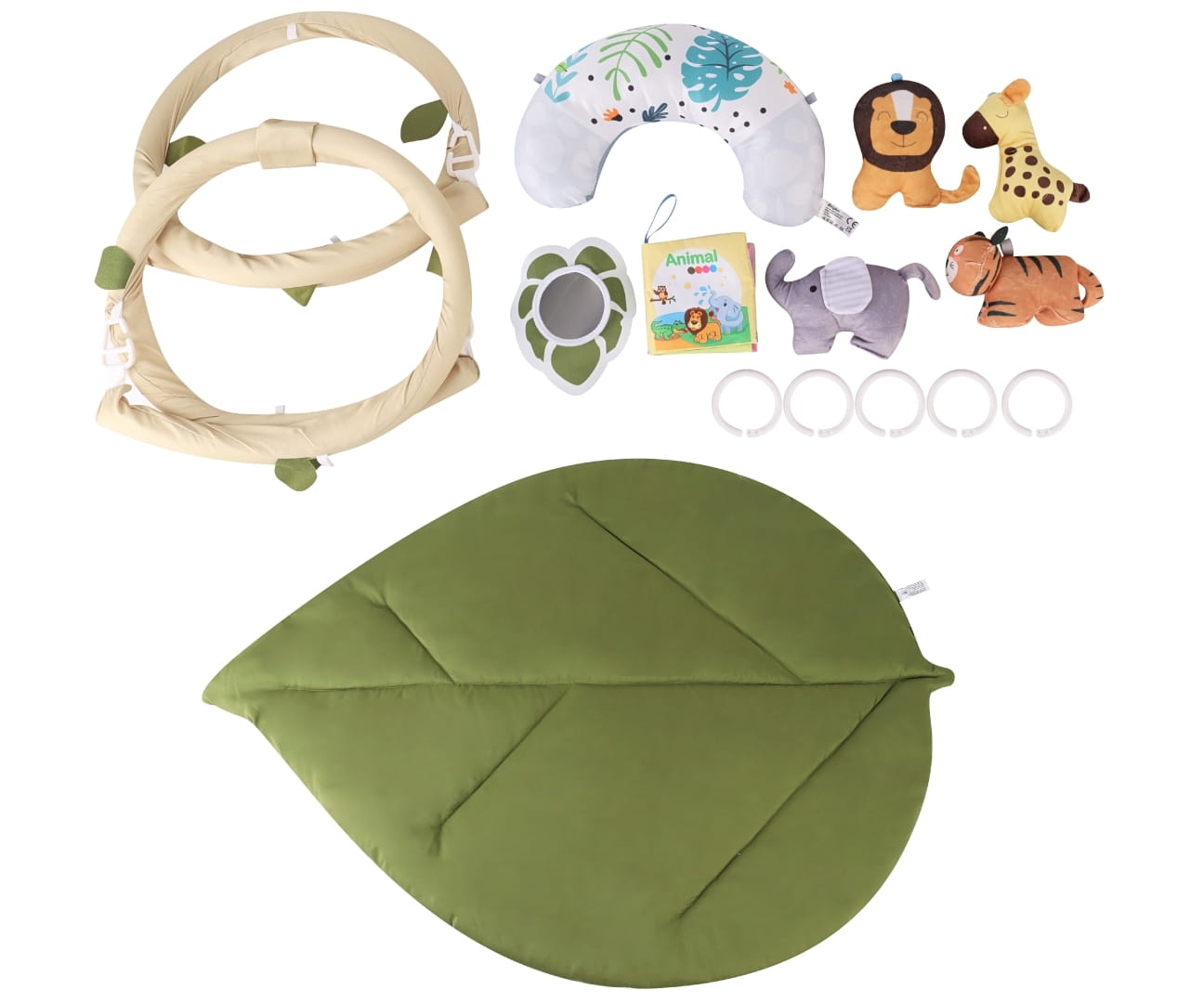 Mata edukacyjna Liść to pięknie zaprojektowane, edukacyjne narzędzie rozwoju dla niemowląt – łączy zabawę, wygodę i bezpieczeństwo. Kolorowe zawieszki, łatwość czyszczenia i możliwość modyfikowania konfiguracji czynią ją wartościowym wyposażeniem dziecięcego pokoiku.