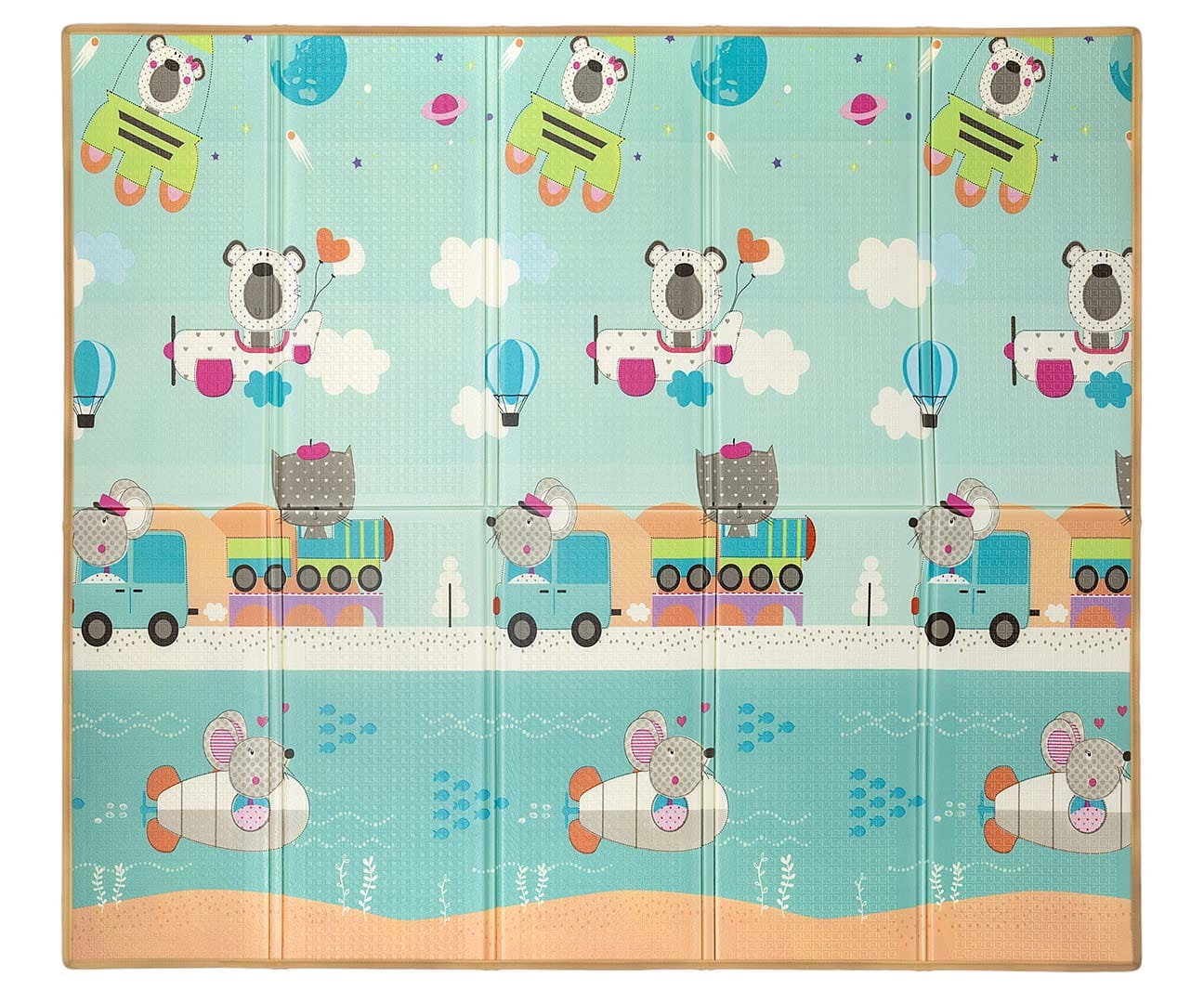 Mata piankowa składana dwustronna Play Circus and Travel T1 cyrk, samoloty, pociąg
