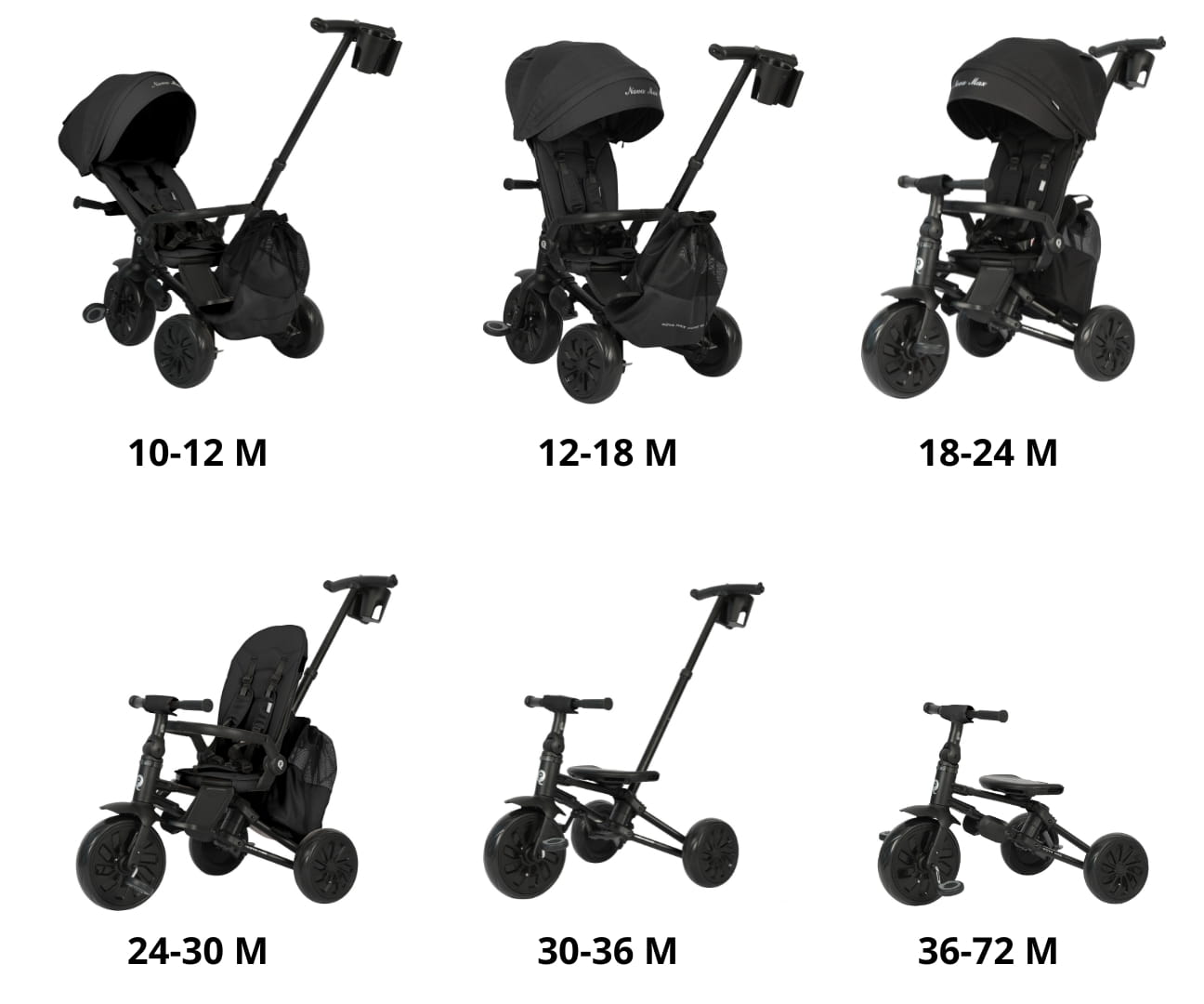 Po zdemontowaniu budki, pałąka, oparcia i pokrowca, NOVA MAX zamienia się w klasyczny rowerek trójkołowy, wspierający samodzielność dziecka.