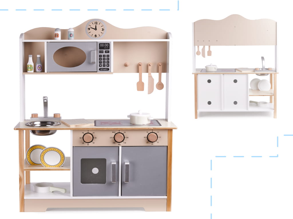 Kuchnia drewniana LULILO KUKETO to wyjątkowa propozycja dla dzieci, które uwielbiają gotować, naśladować dorosłych i tworzyć swoje własne potrawy. To nie tylko piękna zabawka, ale również narzędzie wspierające rozwój wyobraźni, samodzielności i zdolności manualnych.