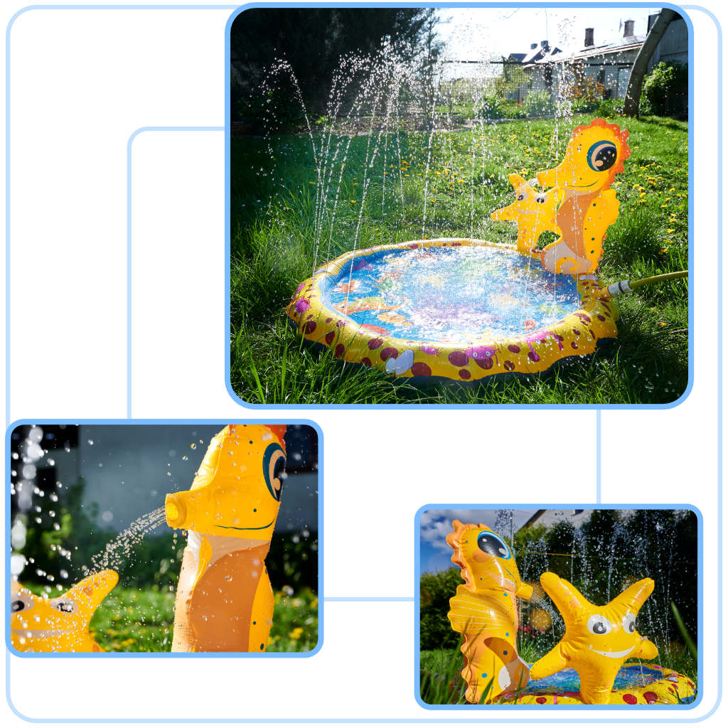 Zraszacz tworzy kurtynę wodną, zamieniając matę w bezpieczny brodzik i zapewniając dzieciom radosną, orzeźwiającą zabawę.